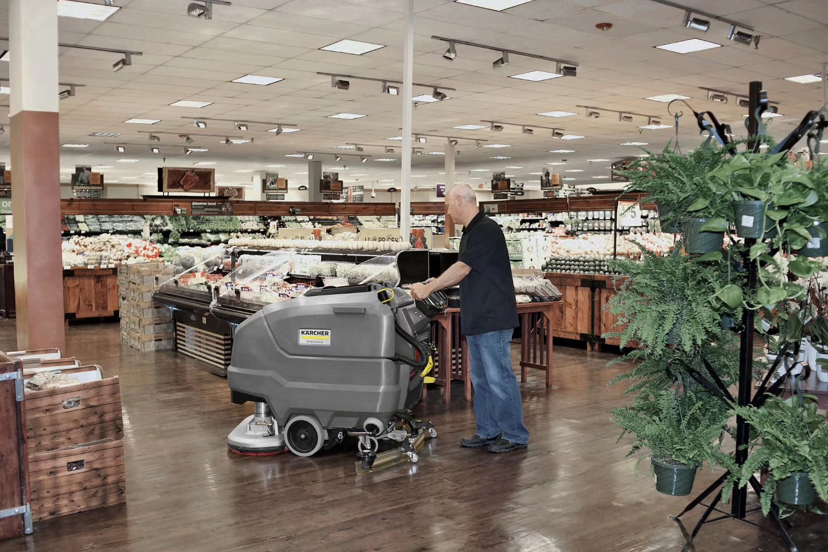 手推式双刷洗地机BD80/100W Class Bp 带有启动牵引马达,动力强劲;两个刷盘,清洁面积大;可调节主刷触地压力,清洁顽固污渍。欢迎咨询。