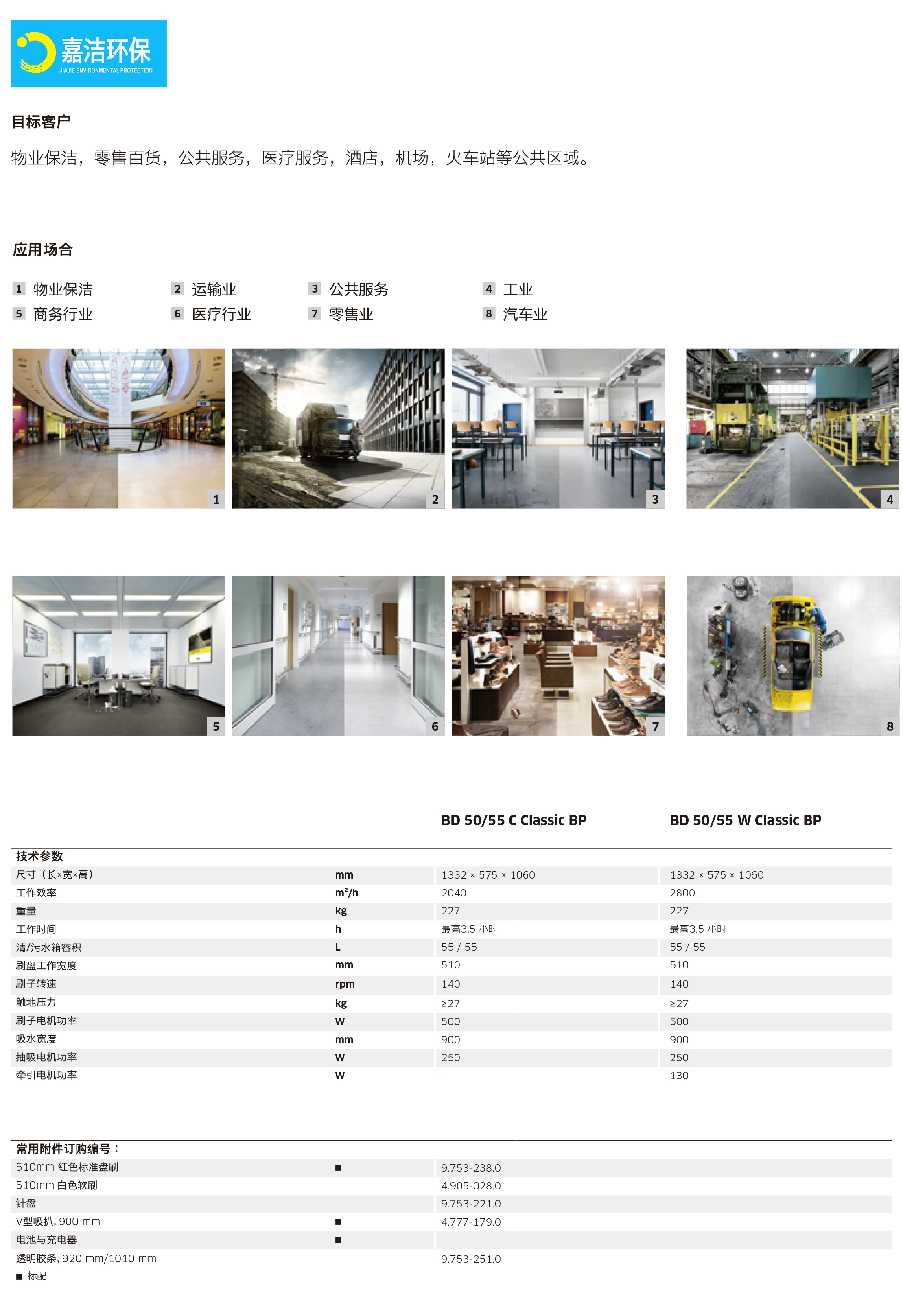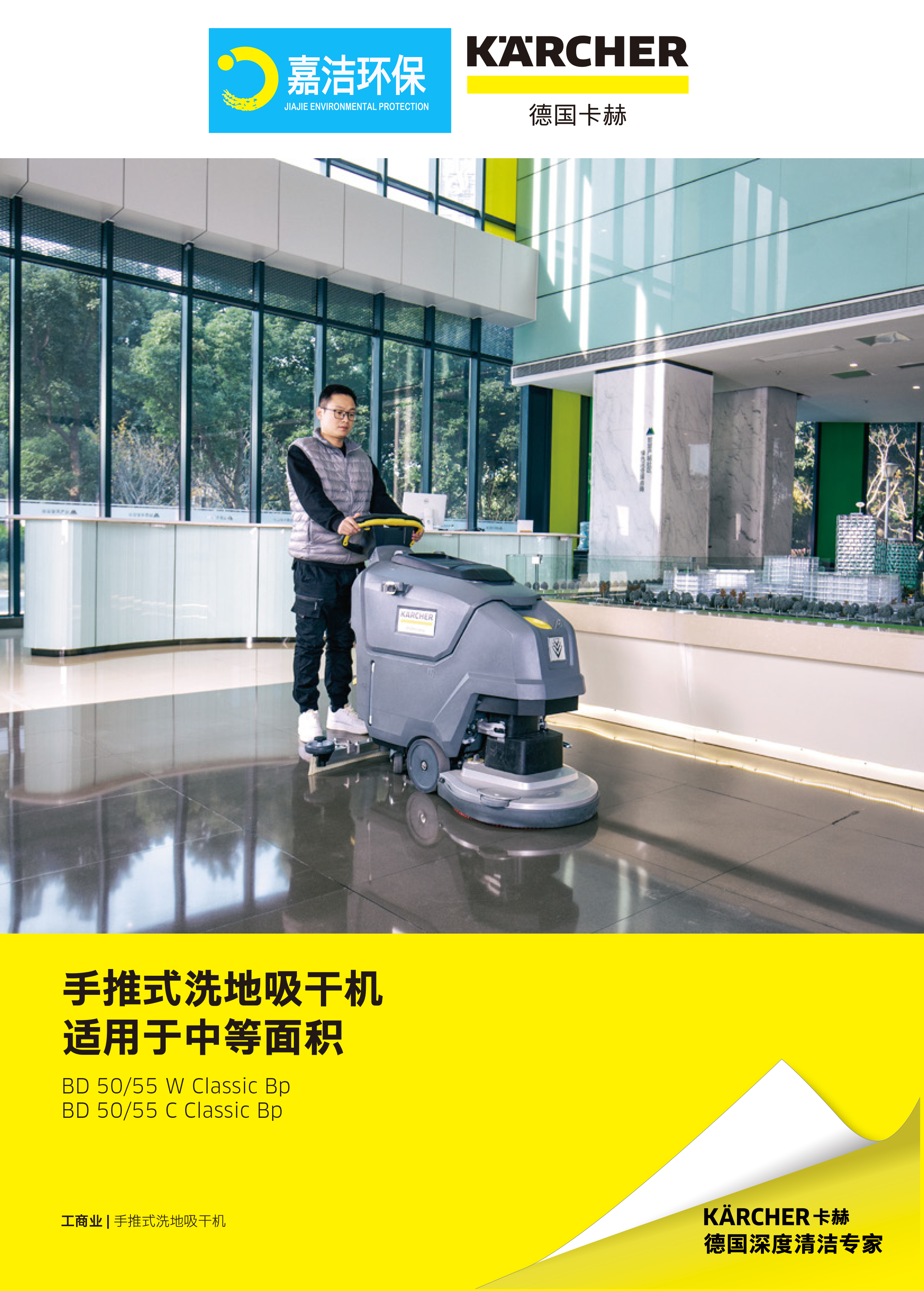 卡赫手推式洗地吸干机BD 50/55 W Classic适用范围广泛,可用于商场超市,生鲜菜场,物业保洁,医疗、办公楼宇,工厂及展馆等公共场所的清洁,还可以通过选用不同材质的附件,满足多种清洁作业区域,如:水泥、花岗岩、大理石、陶瓷、石板等硬质地面和弱性地板。